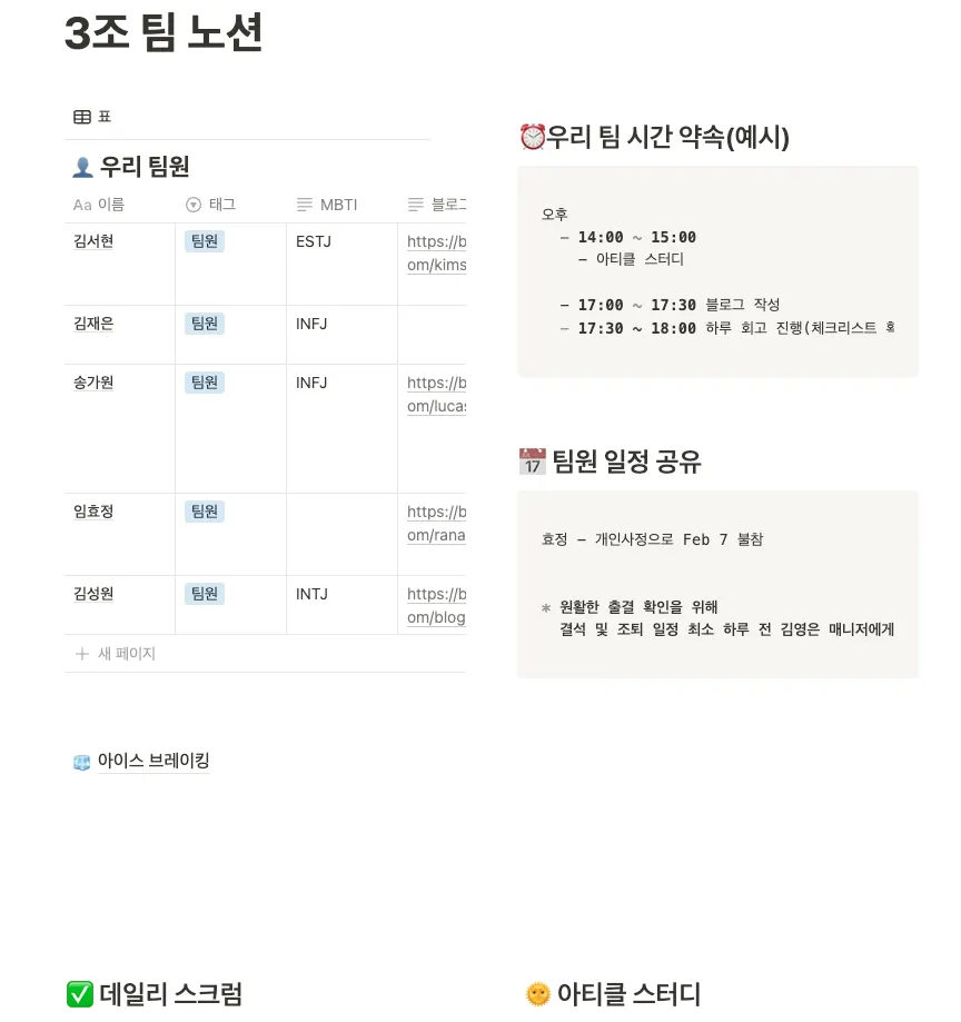 간단하게 인사를 나누신 뒤 우리팀만의 팀 노션을 생성할거에요.