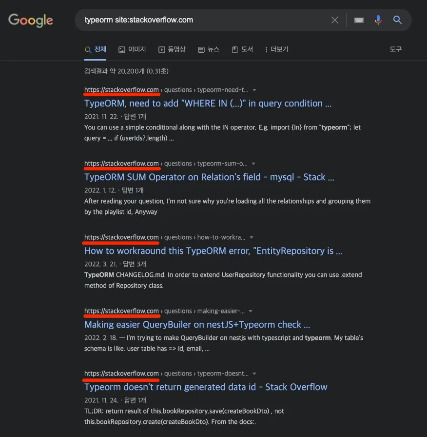 ex) typeorm site:stackoverflow.com