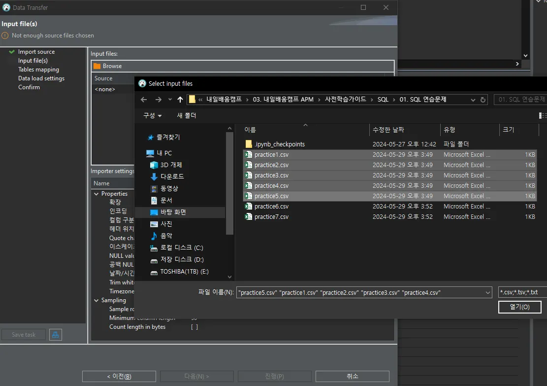 여기서부터는 파일 열기→ 다음 → 다음 → 진행!