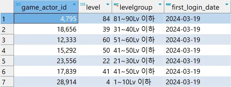 GROUP BY game_actor_id, level, levelgroup, first_login_date