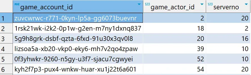 노시현 | SELECT game_account_id, game_actor_id, serverno