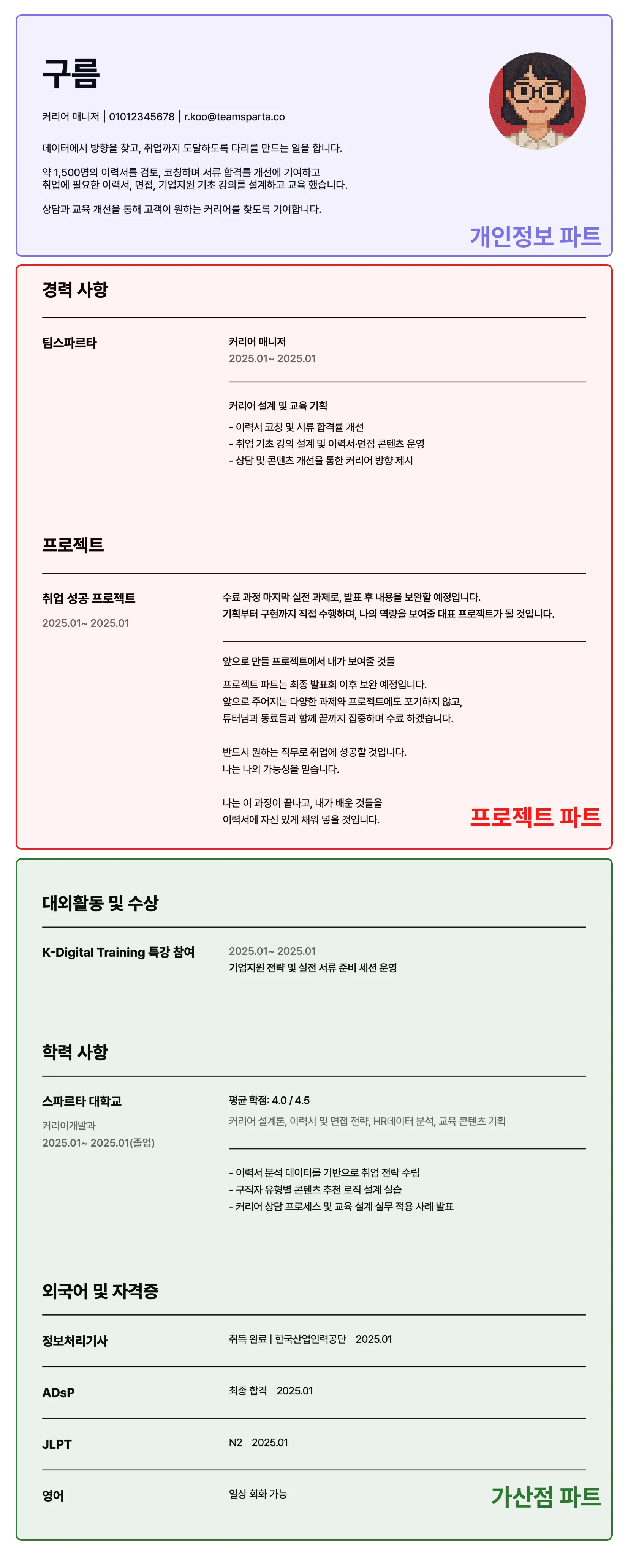 기본 구성과 내가 가진 경험만으로도 충분히 이력서의 대부분을 채울 수 있습니다.