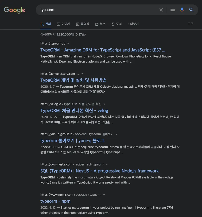 ex) typeorm site:stackoverflow.com