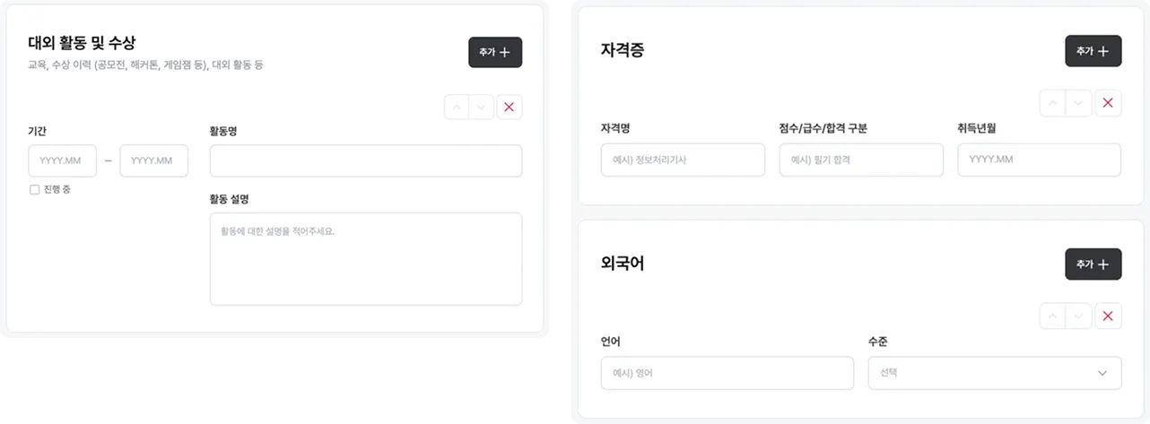 스파르타 커리어 이력서의 [대외 활동 및 수상], [자격증], [외국어] 파트 완성하기