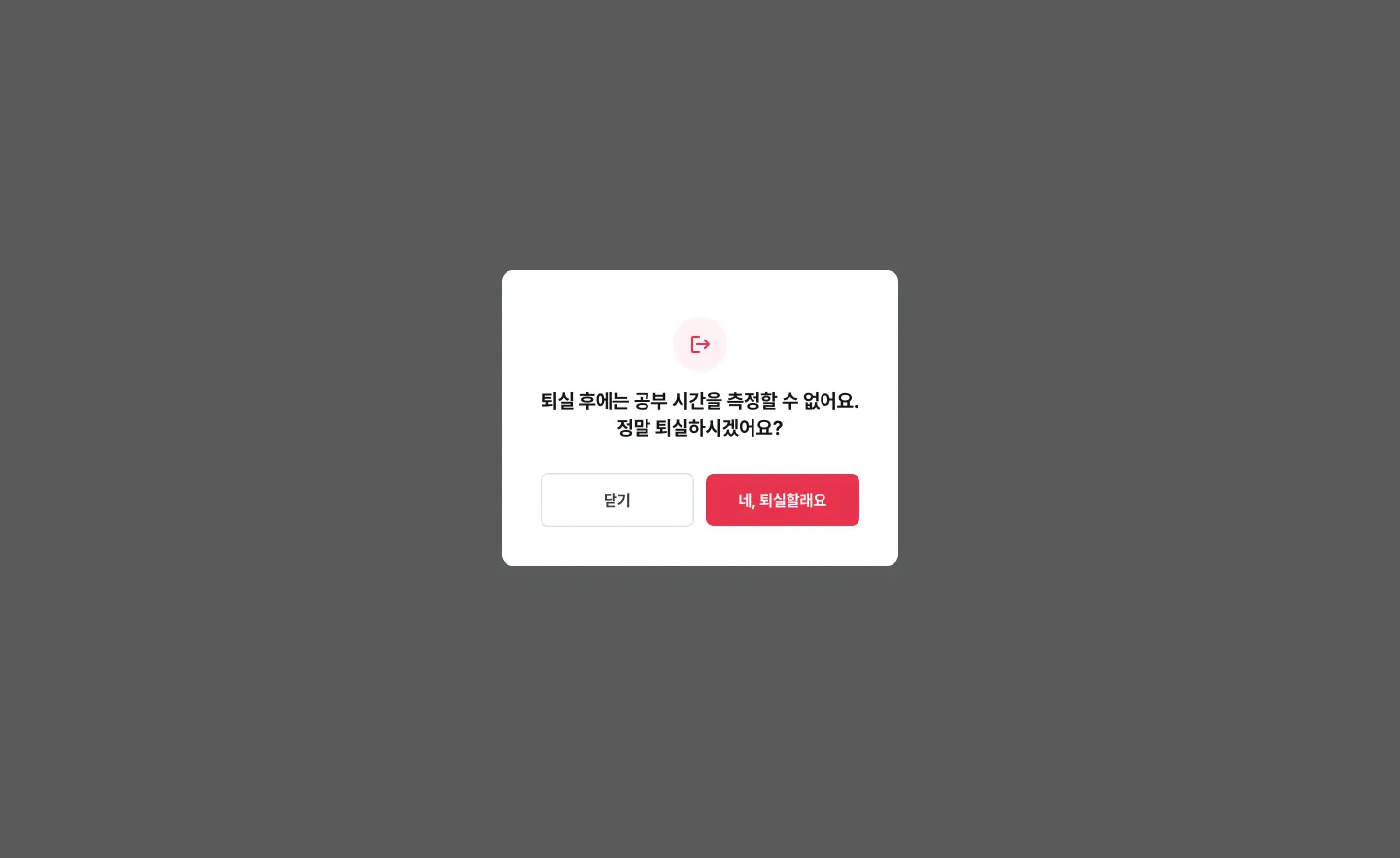 한 번 퇴실하면 재입실이 불가하며, 학습 시간을 측정할 수 없습니다.