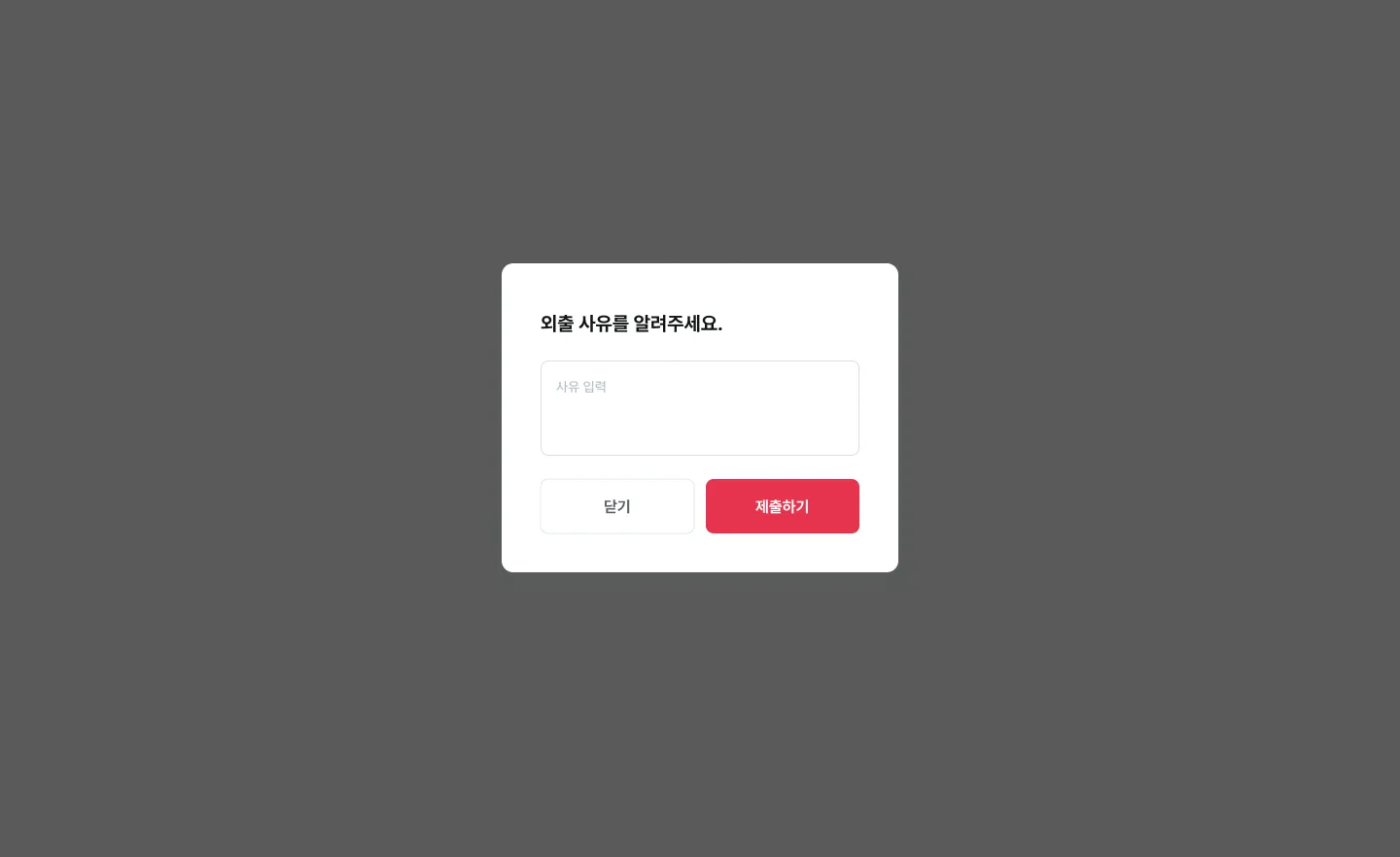 해외 체류, 외부 이동, 근로, 타 수업 수강 등 내일배움캠프 학습에 정상적으로 참여하고 있지 않을 때에는 반드시 외출 처리를 해야 합니다.