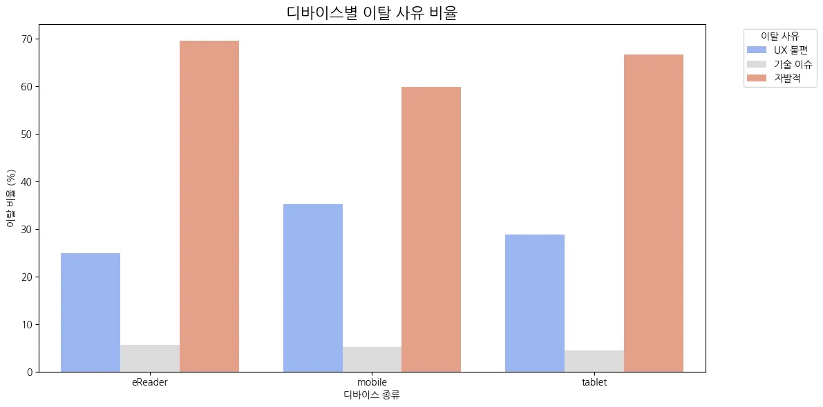 eReader 사용자가 초반(5% 이내)에서 이탈한 경우, 기기 성능 또는 기술적 제약으로 인해 콘텐츠 이용을 포기했을 가능성이 있다.