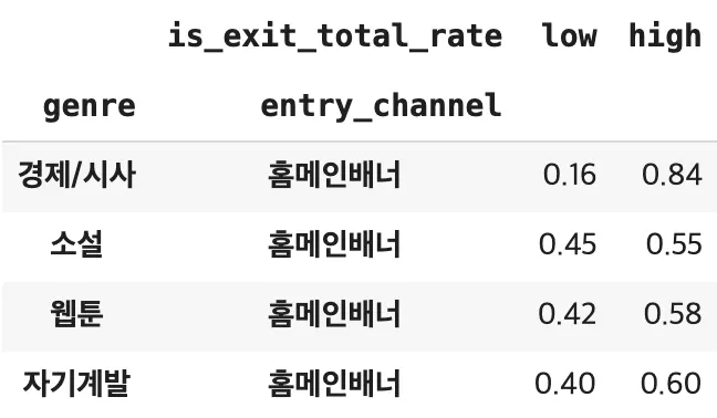 # 장르와 유입경로별 이탈률