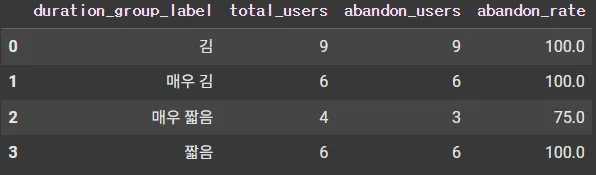 abandon_summary['abandon_rate'] = (abandon_summary['abandon_users'] / abandon_summary['total_users']) * 100