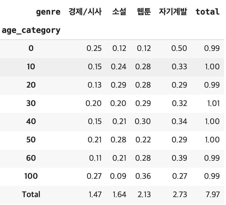 [연령대별 가장 많이 읽은 장르]