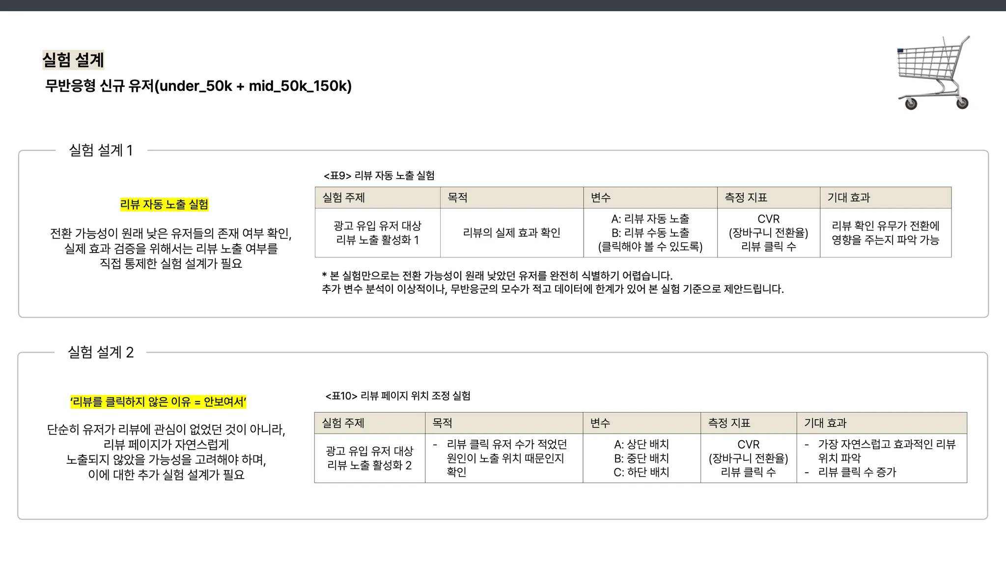 14P : 리뷰가 노출되었을 때 전환율이 올라가는 지를 실험설계를 통해 검증하고자 함.