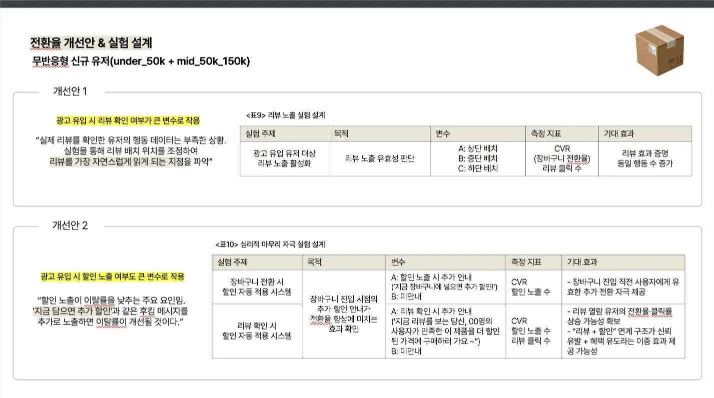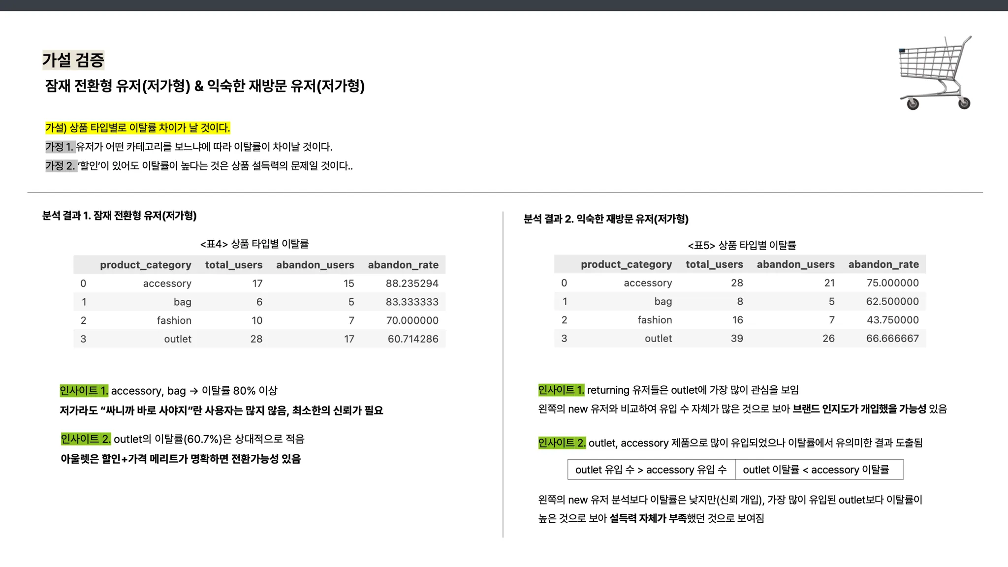 잠재 전환형 유저(저가형) & 익숙한 재방문 유저(저가형)로 묶어서 공통 인사이트를 도출했는데,