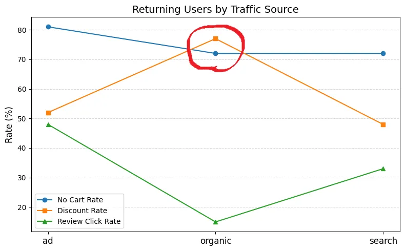 organic: 72%์ ๋น์จ๋ก ์ฅ๋ฐ๊ตฌ๋์ ๋ด์ง ์์. ๊ทธ ์ฌ๋๋ค์ 77%์ ๋ ํ ์ธ ์ ๋ณด์ ๋