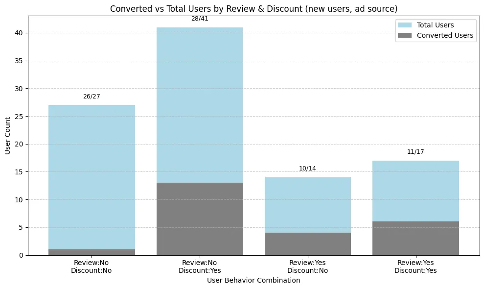 오른쪽 차트는 X축의 행동이 전체 데이터에 차지하는 비율, 유입 수, 이탈 수, 전환율, 이탈율까지 한 눈에 알 수 있음