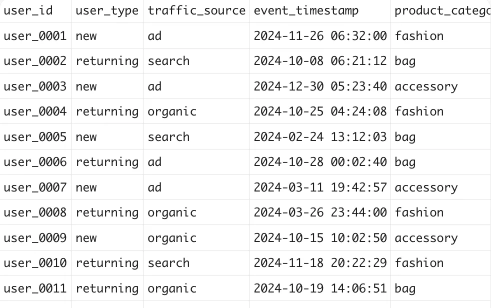 interaction_df = pd.read_csv("product_interaction.csv")conversion_df = pd.read_csv("conversion_status.csv")user_df = pd.read_csv("user_session_info.csv")
