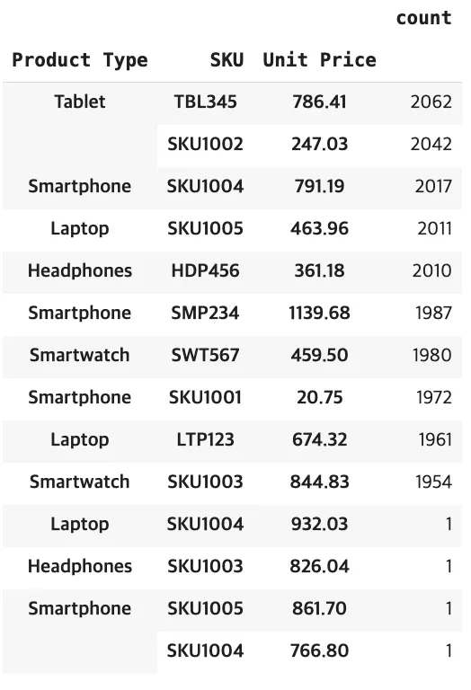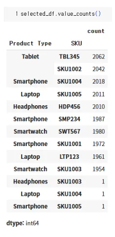 selected_df = df[['Product Type', 'SKU', 'Unit Price']] #스큐가 다른 상품이지는 않을까 확인