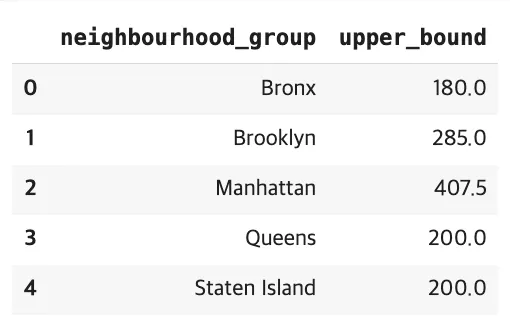 실무에서는 지역, 룸타입 별로 평균을 집계해서 상위 몇 퍼센트를 구해 비교하는 식으로 진행을 한다는데,,, 이렇게 해도 되나여?