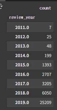 # 연도별 리뷰 수 분포 계산
