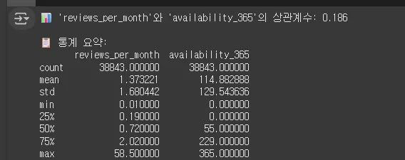 print(f"📊 'reviews_per_month'와 'availability_365'의 상관계수: {round(correlation, 3)}\n")