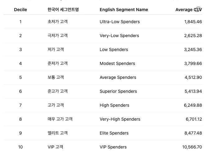 저희는 고객의 총 CLV가 가장높은 상위 5개조합을 기준으로 삼전의 고객생애가치를 늘리는 방안에 대해 말씀드리곘습니다~