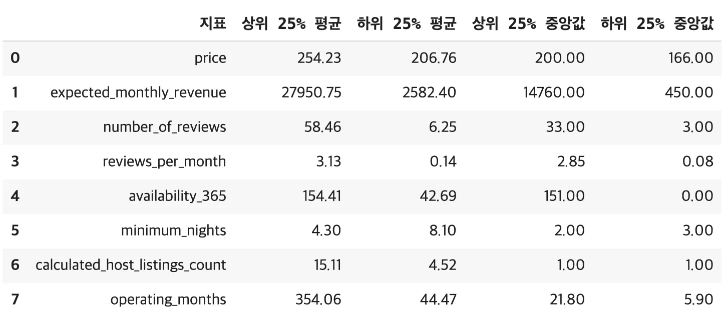results['상위 25% 중앙값'].append(round(upper[col].median(), 2))