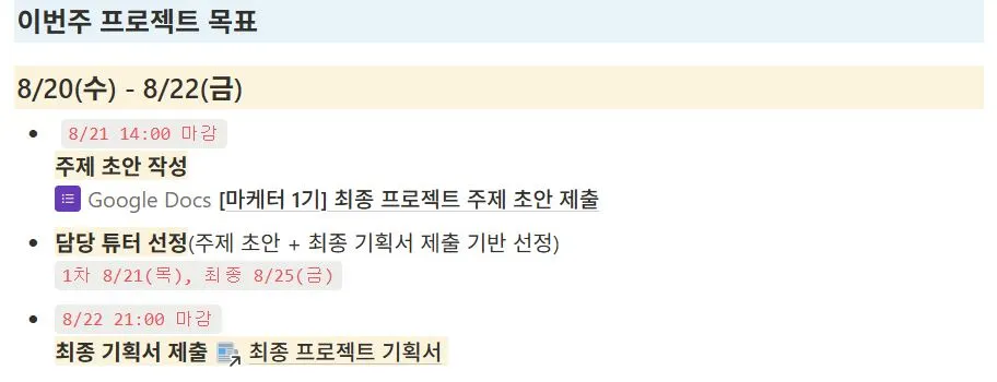 이번주차 목표 (사진으로 캡쳐 후 삽입)