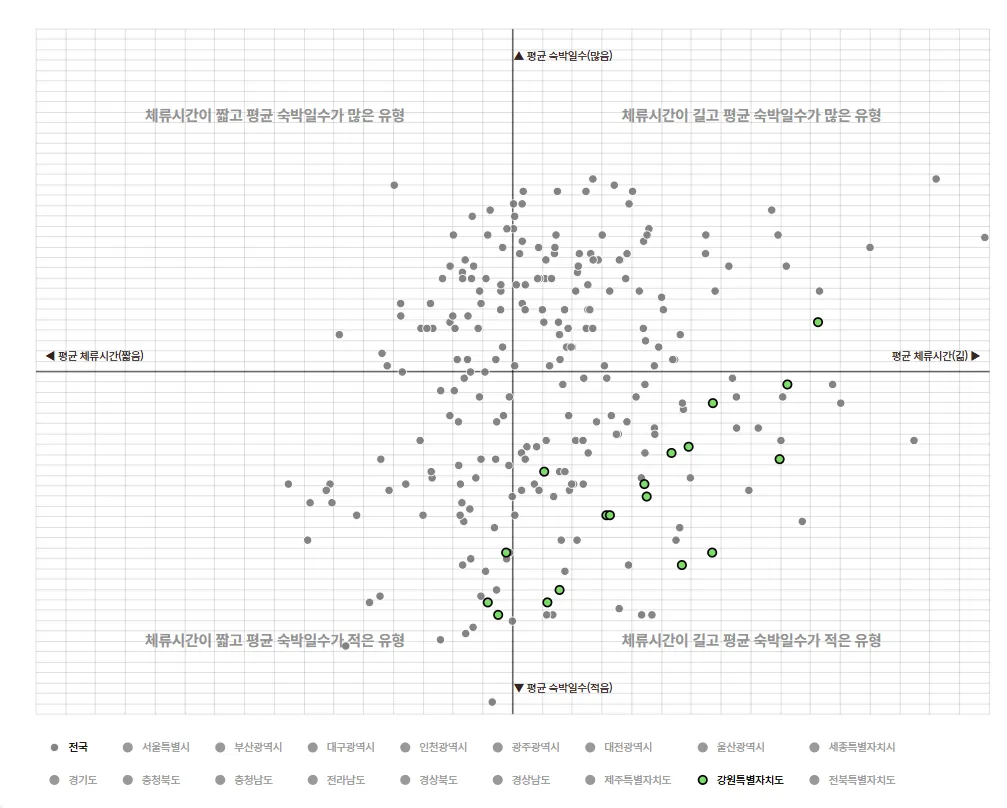 평균적으로 몇박하는지 방문자 체류특성 확인가능