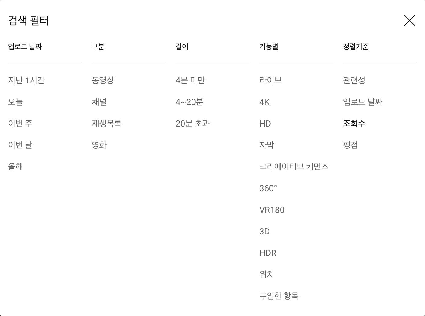 2년 이내, 동영상, 4~20분, 조회수 기준 : 영상 10개