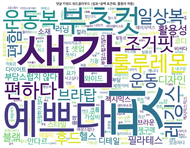 1. 소비자들이 많이 말하는 제품: 애슬레저 의류 중 어떤 구매를 하는지(ex. 조거팬츠, 부츠컷 레깅스 등)
