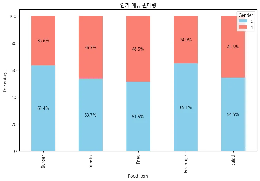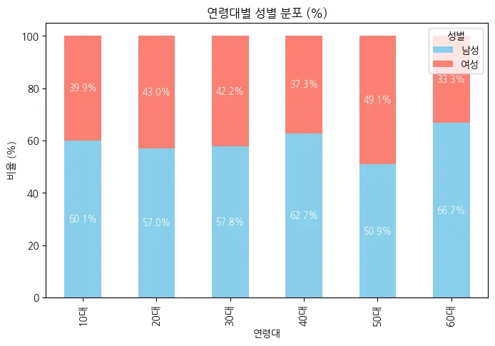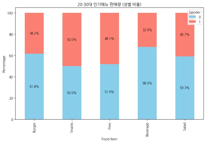 성별 선호도 분석 결과 1위( 남성 42%, 여성 58% )