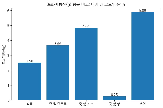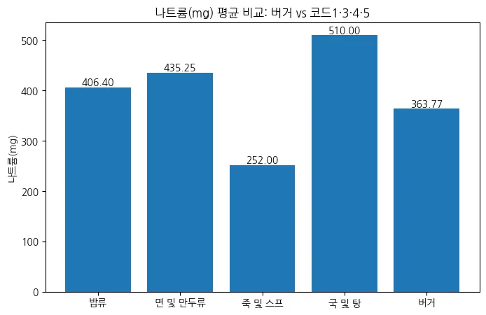 다른 식품군에 비해 버거의 나트륨양은 평균에 속한다.
