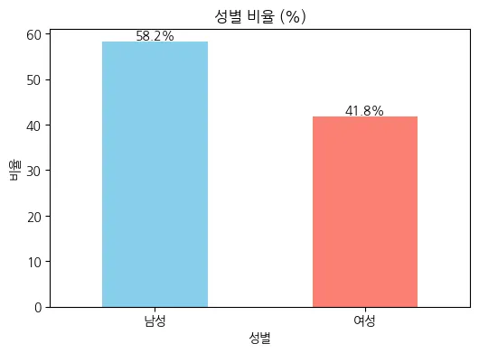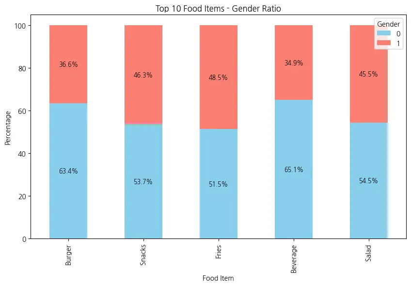 성별 선호도 분석 결과 1위( 남성 42%, 여성 58% )