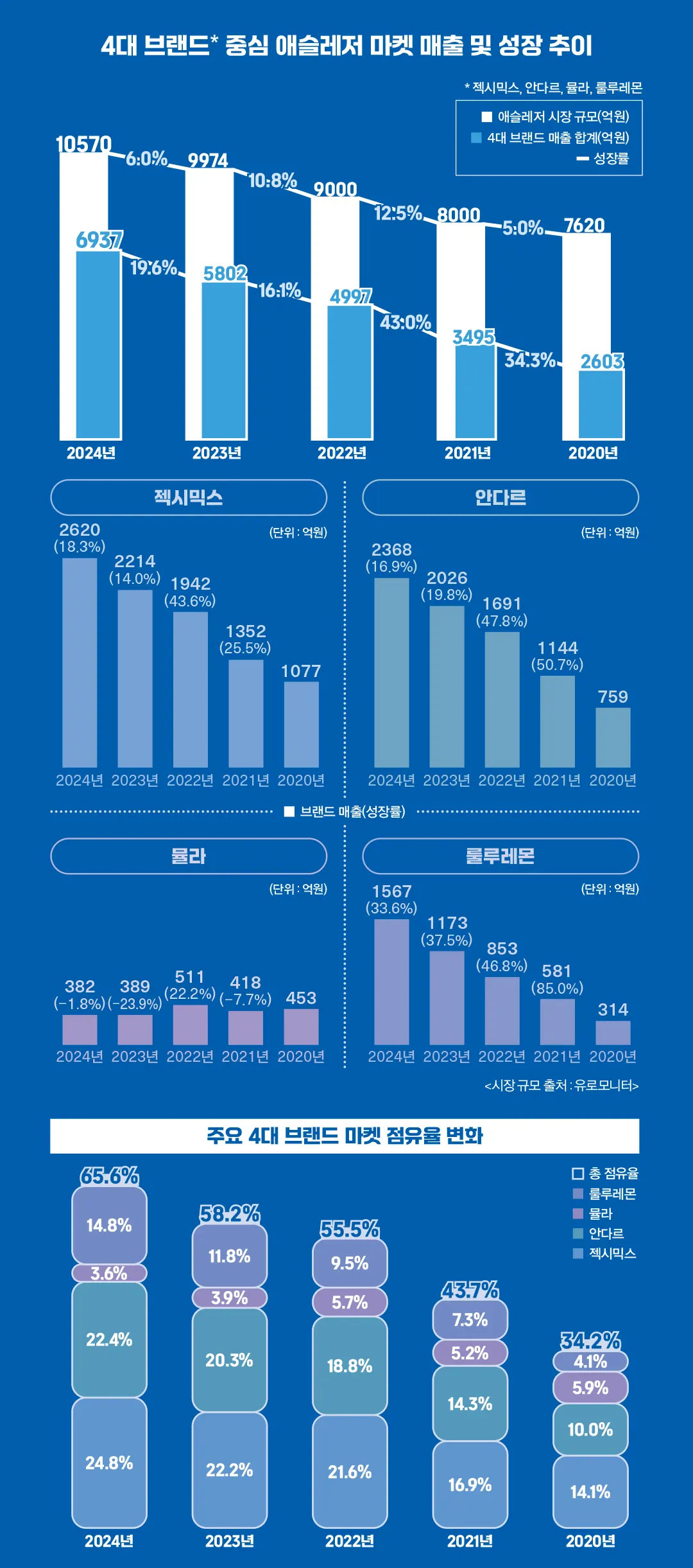 연도 | 안다르 | 젝시믹스 | 뮬라웨어 | 룰루레몬 |