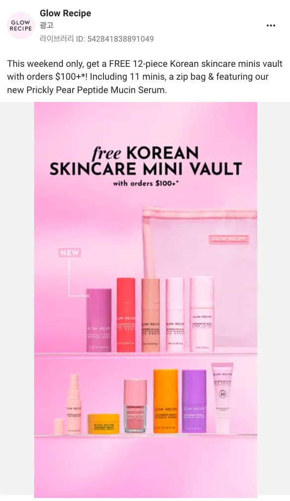 이번 주말에만 $100+* 주문 시 12피스 한국 스킨케어 미니 금고를 무료로 받으세요! 11개의 미니를 포함한 지퍼백과 새로운 프릭틀리 배 펩타이드 뮤신 세럼을 만나보세요.