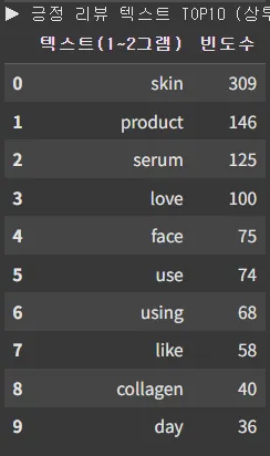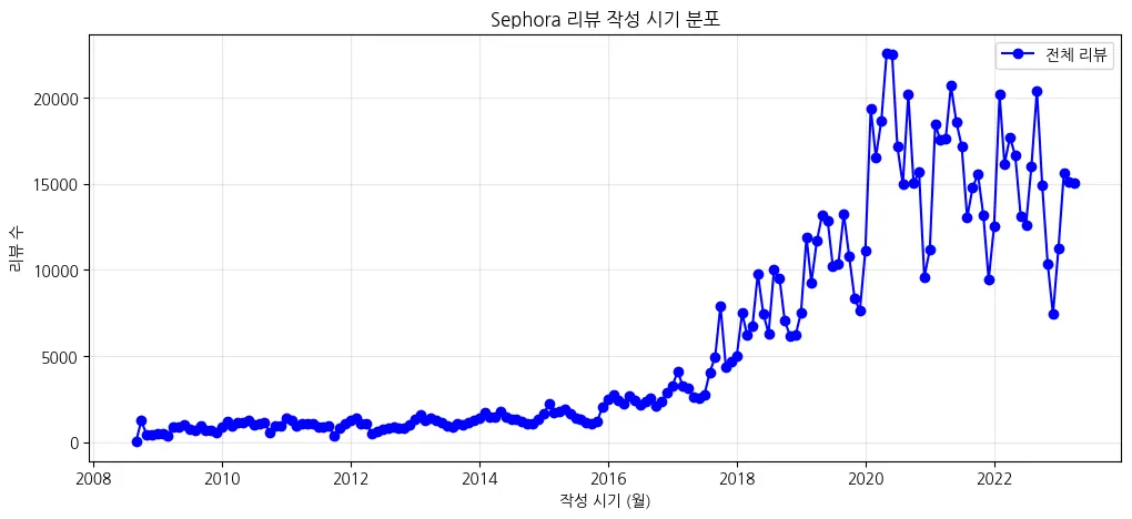 전체 시장은 피부 타입, 일상 사용 경험 중심 → 일반적인 소비자 리뷰