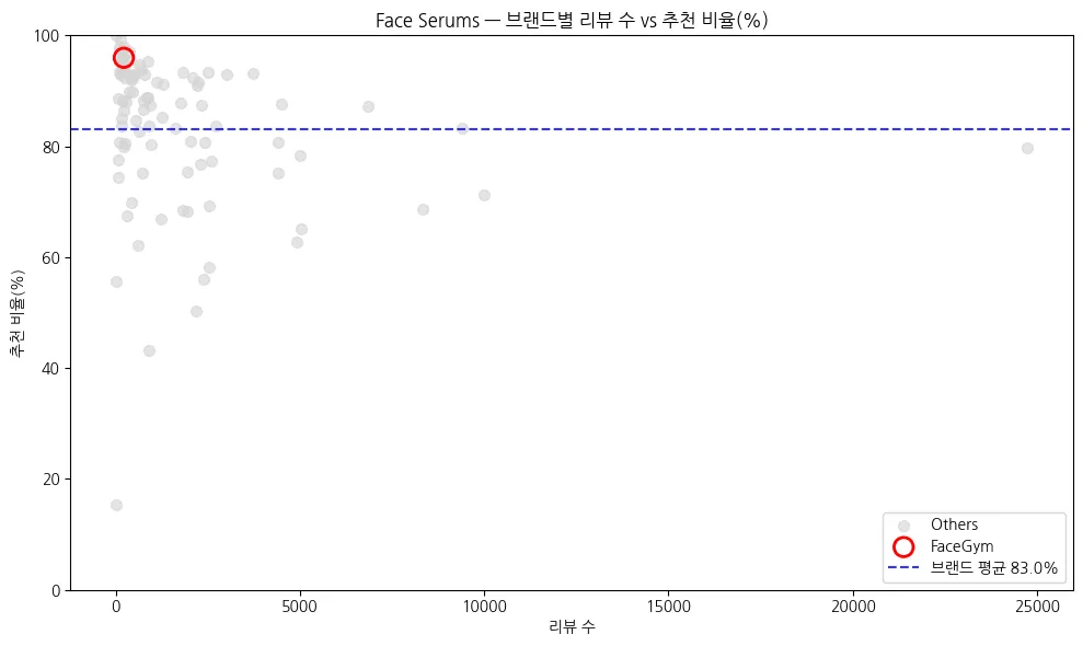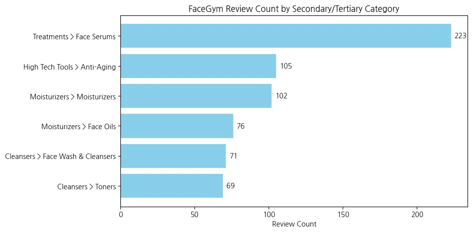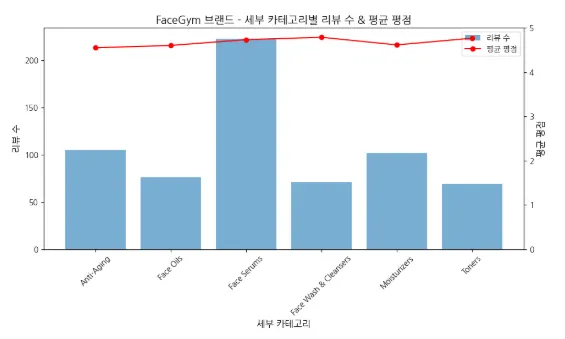 FaceGym은 고급??/기능성 제품 이미지 → 특정 피부 고민/효과 중심 리뷰