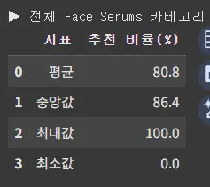 세럼 제품군 브랜드 순위 FaceGym은 246위 → 애매/ 검증 필요. 브랜드 평균 순위인지? 단순 제품 순위인지?