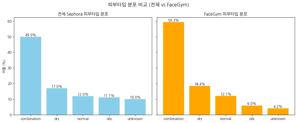 페이스 짐 피부타입 분포