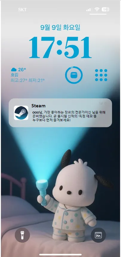 - 스팀 알람(푸시): 특정 수집 목표를 달성했을 때 즉각적으로 축하 메시지와 보상을 알린다.