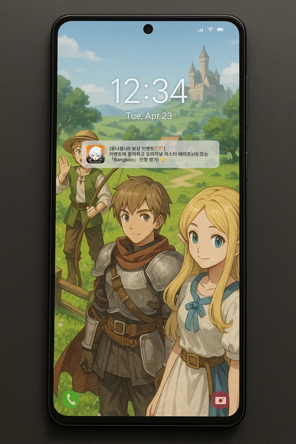 전략: 첫 결제 혜택에 대한 안내 / 대형 이벤트 홍보 알림 / 새로운 캐릭터 출시 알림
