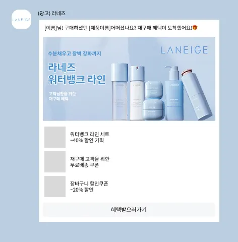 수분 케어 전문가 [이름]님을 위한 프리미엄 혜택과 가장 먼저 만나볼 신제품이 준비되어있습니다!