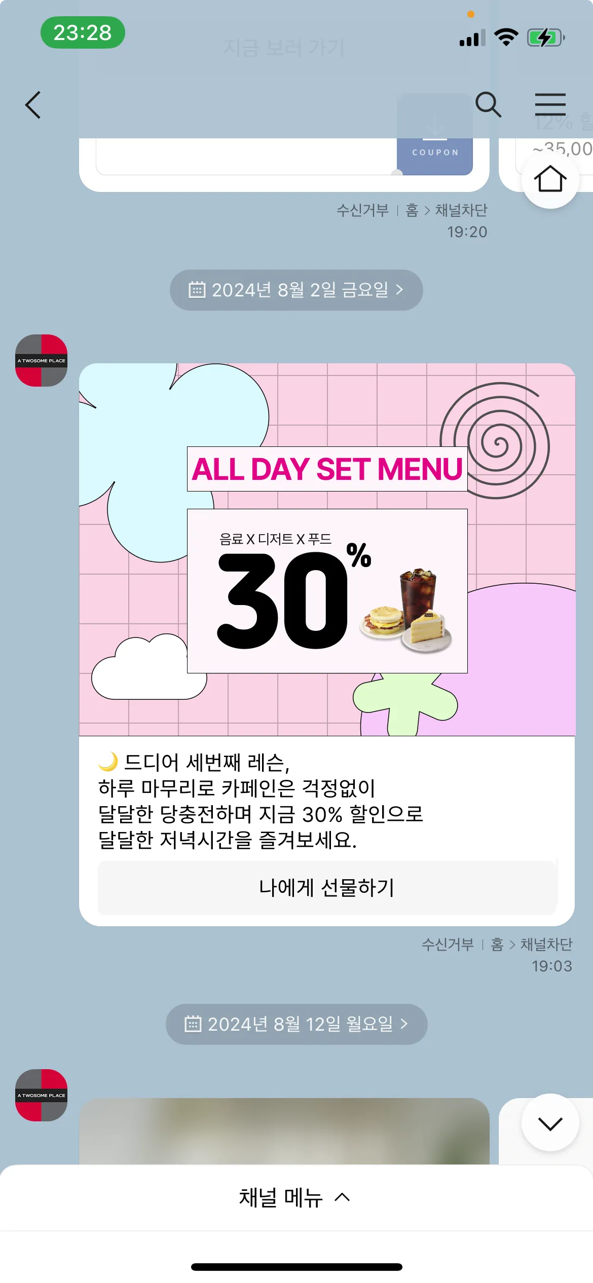 채널: 앱 푸시 + 카카오톡 광고 메시지