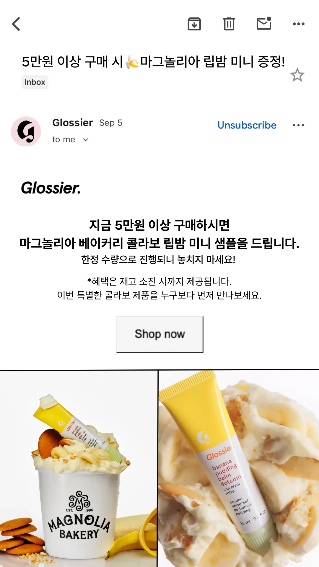 전략: 5만원($35) 이상 구매 시 신제품 미니 샘플 증정