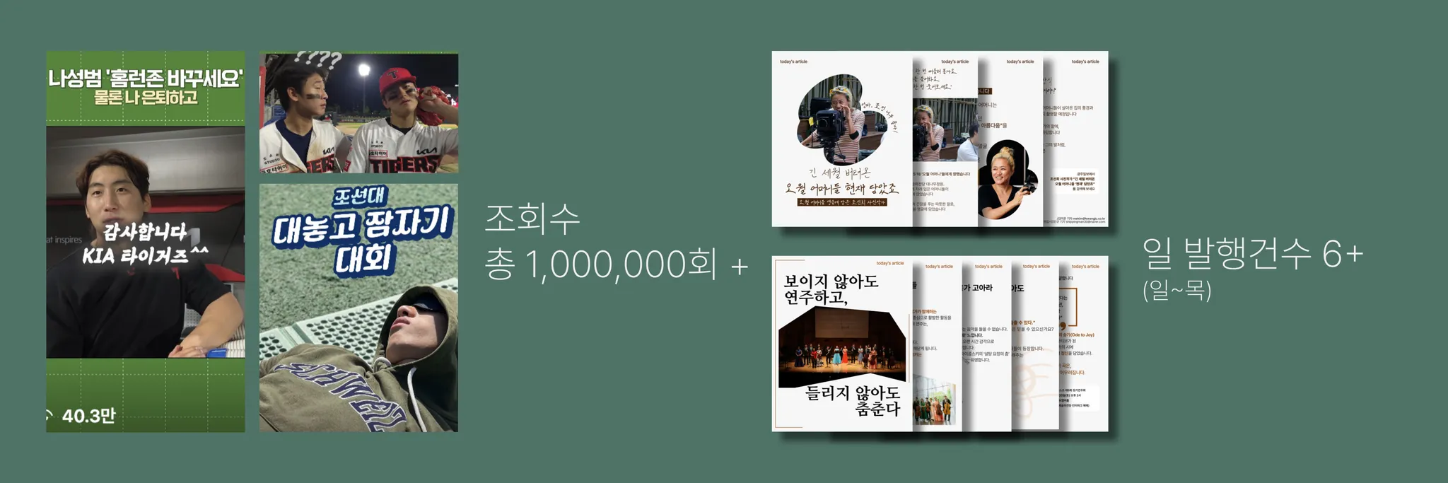 릴스 26편 제작, 일 6-7건 카드뉴스 제작