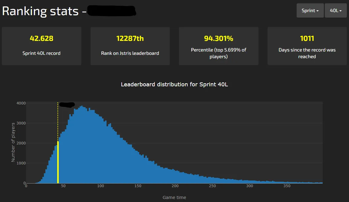 다른 게임은 잘 못하고, 테트리스는 세계 상위 5.7%입니다.