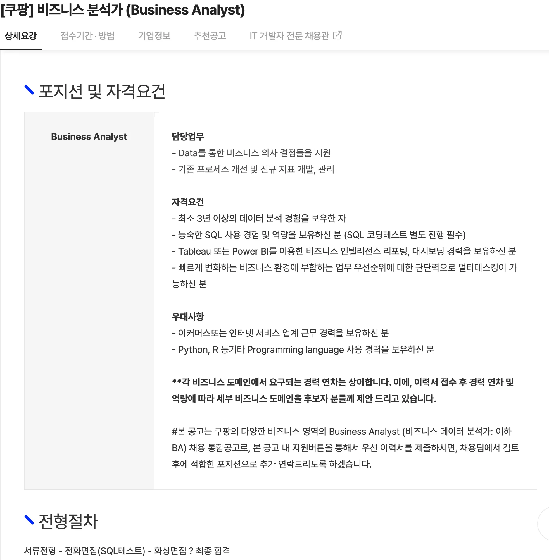 채용 공고 [우아한 형제들/토스/쿠팡 - Business Analyst]