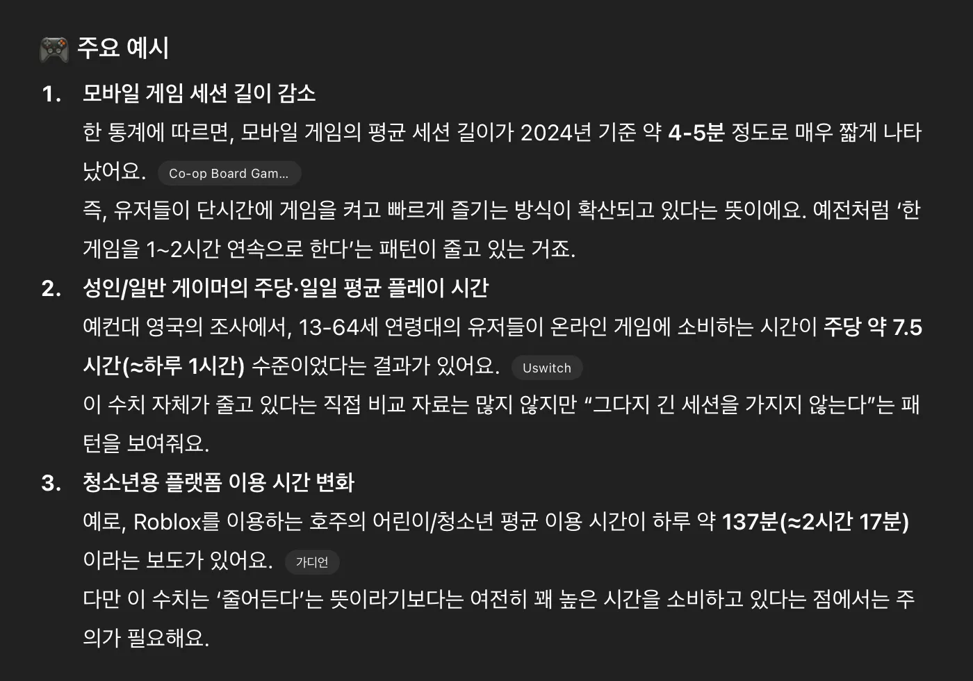 최근 트렌드 : 야구나 게임 등 다양한 분야들에서 사람들의 집중 시간을 줄이려고 함. (숏츠 활성화 & 숏츠 시간 단축되어가는 상황)