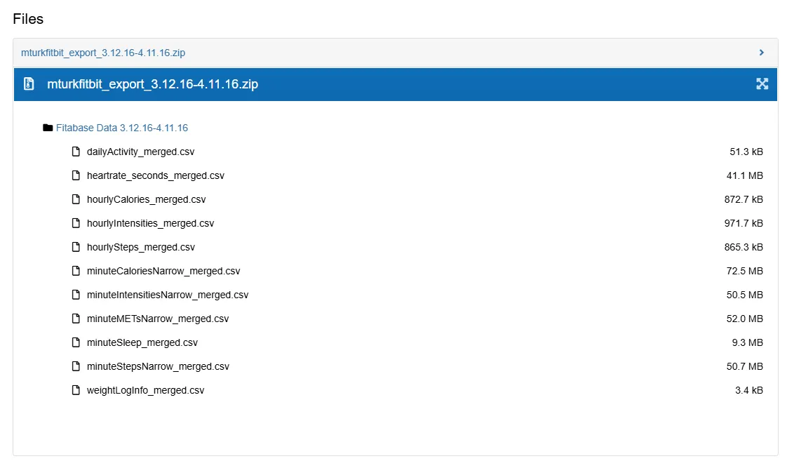 30명의 Fitbit 사용자가 신체 활동, 심박수, 수면 모니터링에 대한 분 단위 출력을 포함한 개인 스마트워치 데이터 제출에 동의하였고 이러한 정보들이 수집이 되었습니다.