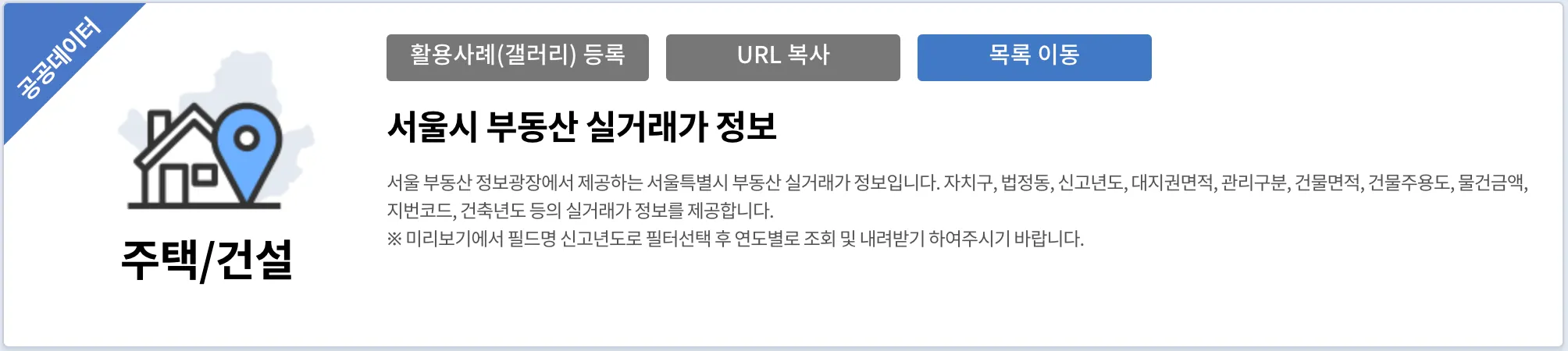 서울시 부동산 실거래가 정보는 실제 거래 신고 기반의 데이터입니다.