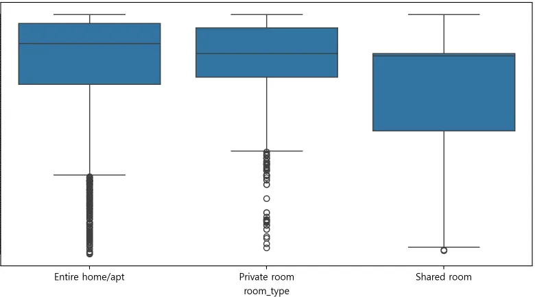 이는 가격 결정의 1차적 요인이 숙소 유형임을 보여준다.